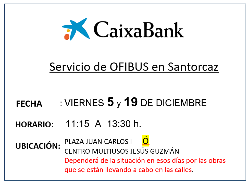 EL OFIBUS DE CAIXABANK DEBIDO AL CORTE REALIZADO HOY 05 diciembre de 2025