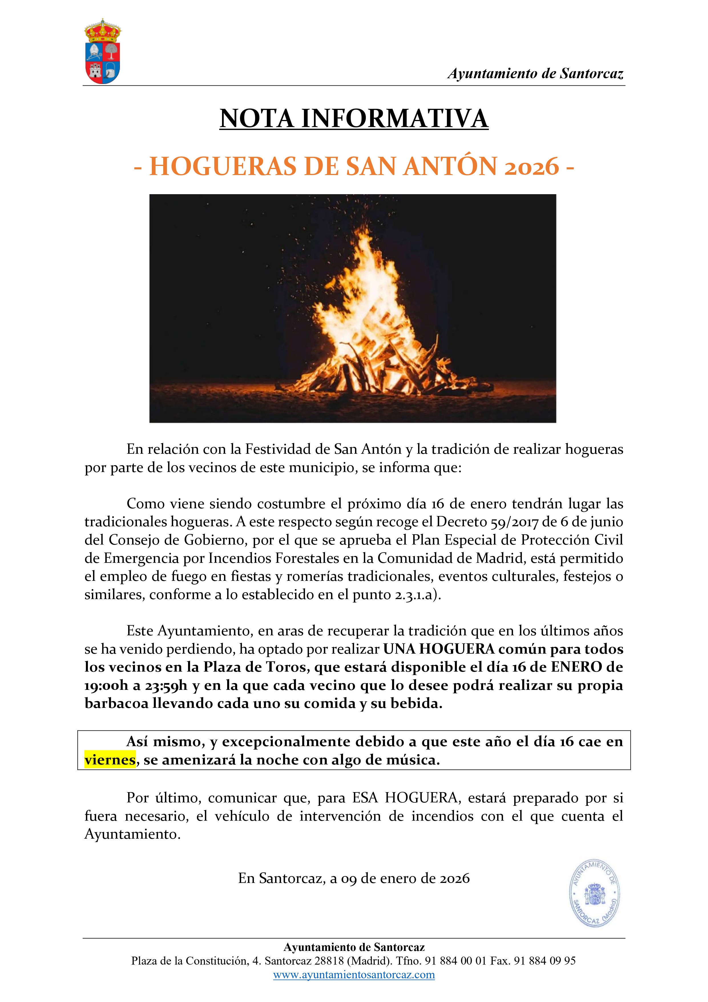 🗓️🥳 CALENDARIO LABORAL y FECHAS FIESTAS SANTORCAZ 2026 🥳🗓️