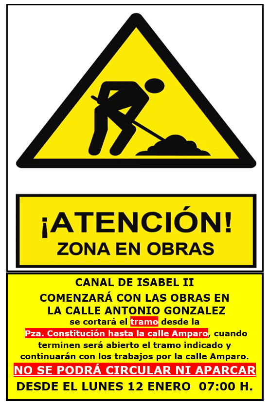 ‼️📢🚧👷CANAL DE ISABEL II COMENZARÁ CON LAS OBRAS EN LA CALLE DEL AMPARO EL LUNES 12 ENERO.