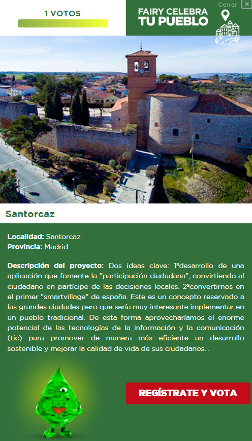Dirección para votar: https://onlinepromotions.proximaati.com/fairy/1351/fairyvotatupueblo/home?pag=1&loc=santorcaz