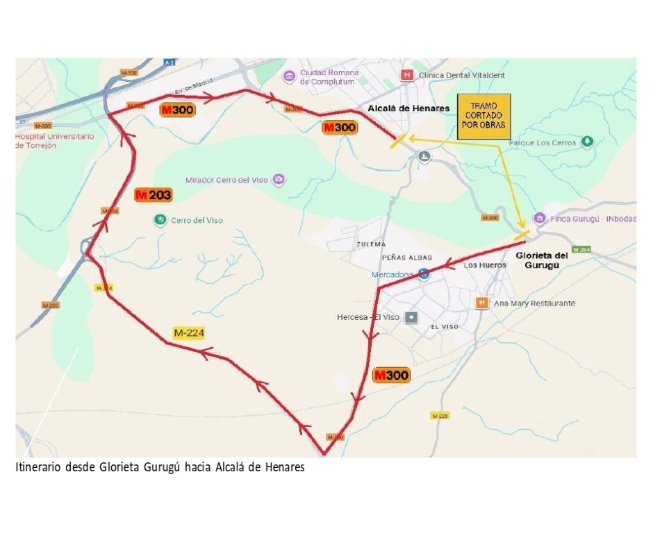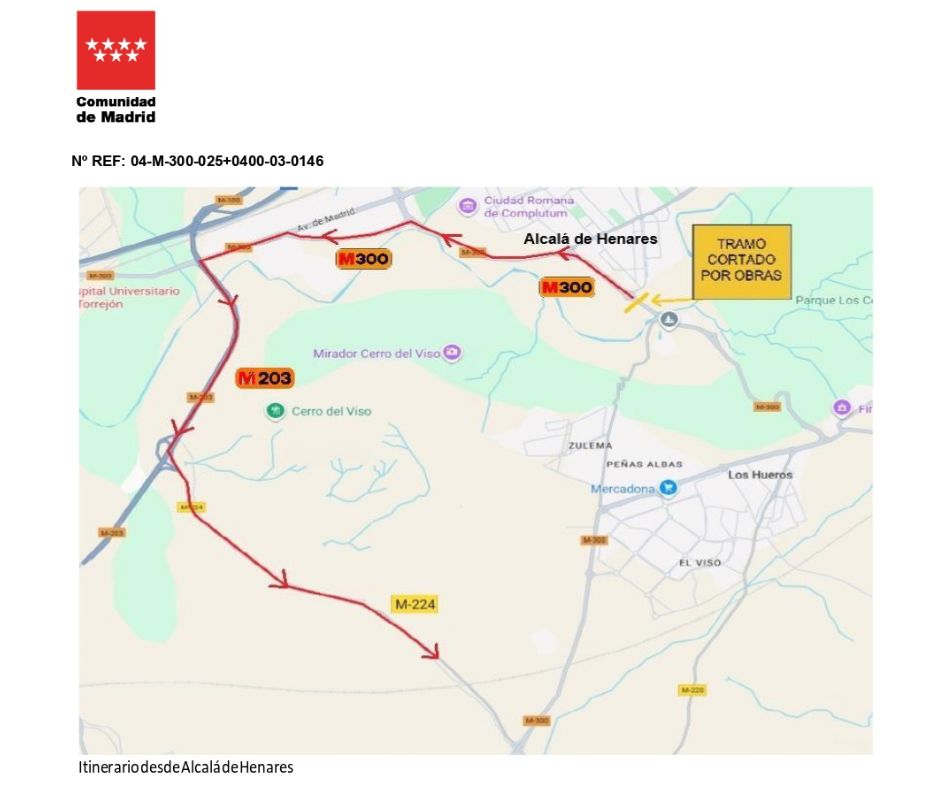 👉 Durante las obras, se habilitará un itinerario alternativo a través de la M-224 y la M-203.
