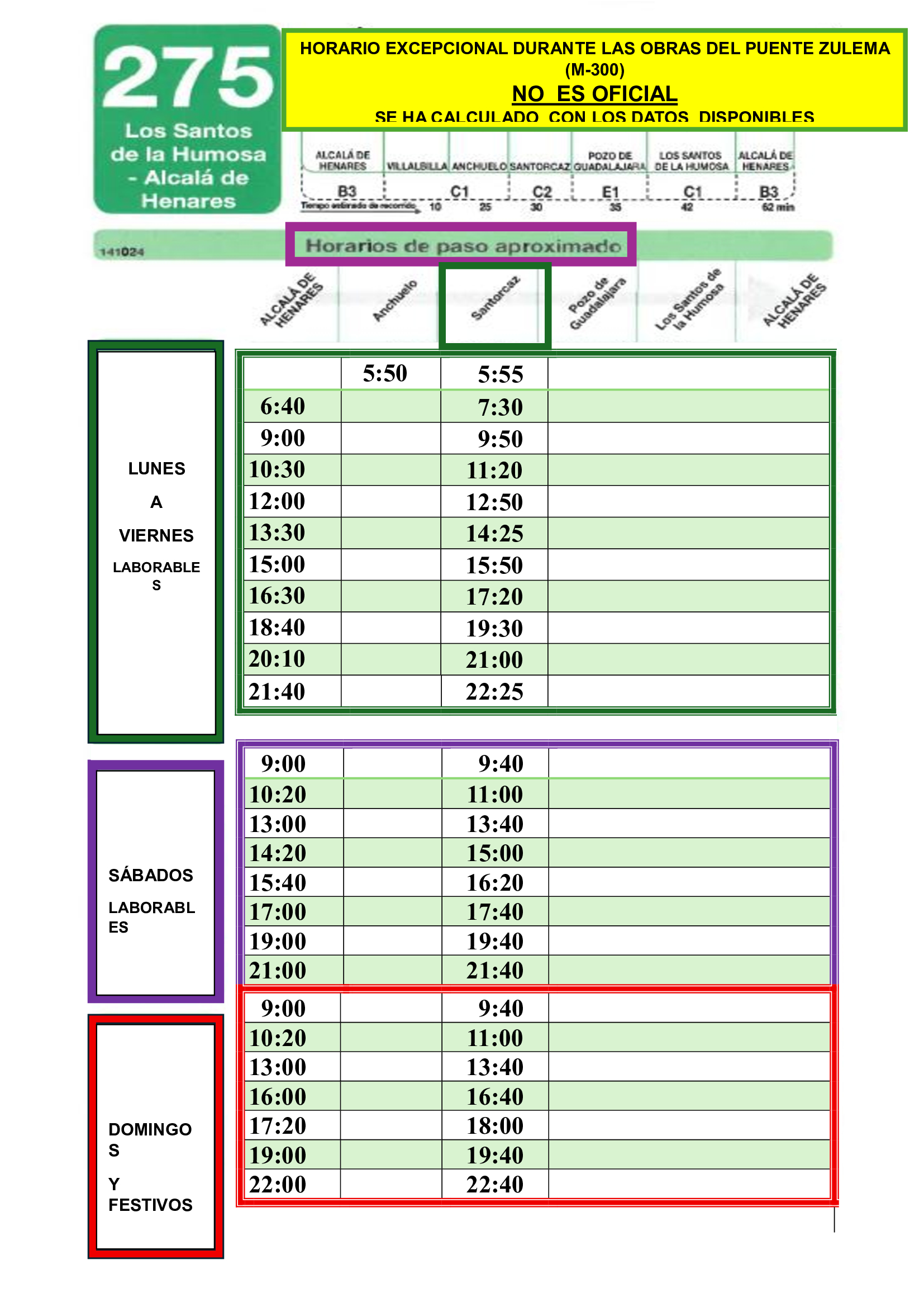 š¢šINFORMACIĆN SOBRE HORARIO AUTOBUSES DURANTE LAS OBRAS EN M300 A PARTIR DEL LUNES 6 OCTUBRE. VER ADJUNTOS.2025-10-03 09:28:13Info. GeneralINFORMACIĆN SOBRE HORARIO AUTOBUSES DURANTE LAS OBRAS EN M300, A PARTIR DEL LUNES 6 DE OCTUBRE, HASTA SU FINALIZACIĆN.